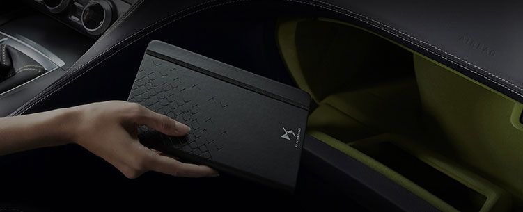 Сатиноване алюмінієве оздоблення порогів цього сучасного кросовера прикрашене зображенням кошика повітряної кулі, підписом Жуля Верна та логотипом DS.